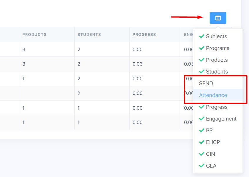 One you click on the Switch Columns button, a dropdown menu appears. You can select the columns you want to see in the Summary Table. The columns you select will be saved in your browser's local storage.