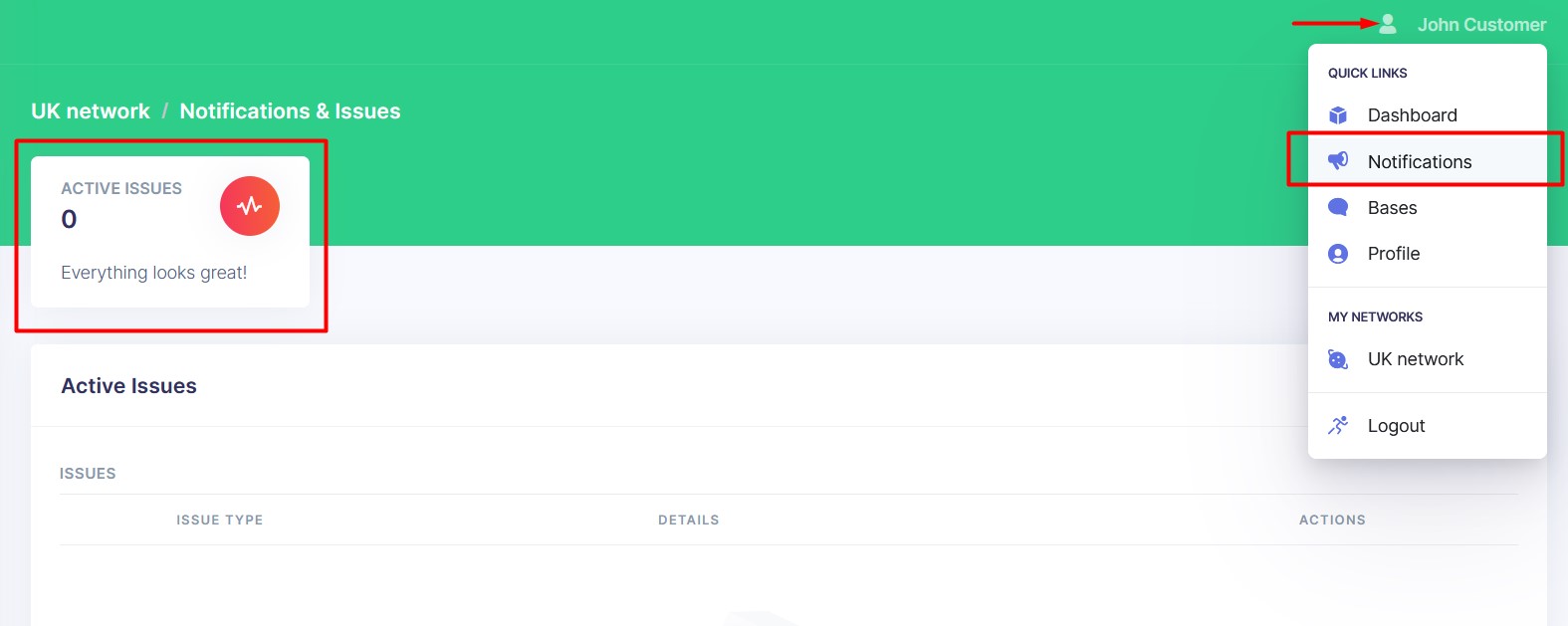 There is an Active Issues counter at the top of the screen. It shows a number of the notifications that have not been resolved.